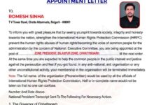 रायगढ़/बिलासपुर . अंतर्राष्ट्रीय मानव अधिकार संरक्षण आयोग के छत्तीसगढ़ प्रदेश अंतर्गत जिला रायगढ़ के जिला…