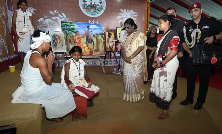 राष्ट्रपति श्रीमती मुर्मु ने बस्तर पंडुम को आदिवासी विरासत को संजोने और उसे पूरी दुनिया तक पहुंचाने का सशक्त माध्यम बताया। उन्होंने एक-एक कर ढोकरा हस्तशिल्प कला, टेराकोटा, वुड कार्विंग, सीसल कला, बांस कला, लौह शिल्प, जनजातीय वेश-भूषा एवं आभूषण, तुम्बा कला, बस्तर की जनजातीय चित्रकला, स्थानीय व्यंजन तथा लोक चित्रों पर आधारित आकर्षक प्रदर्शनी का अवलोकन किया और इसकी सराहना की।