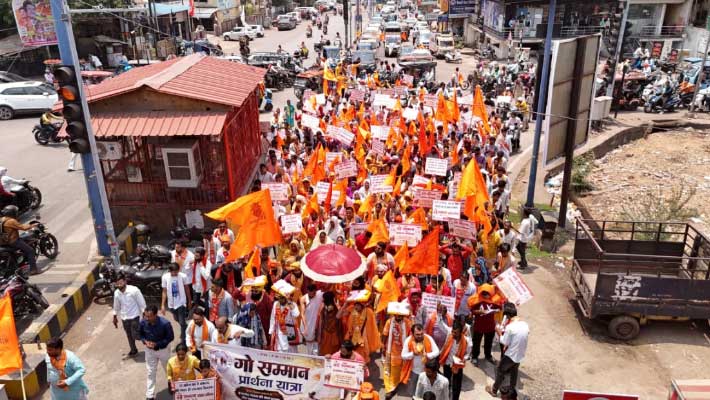 रायपुर, छत्तीसगढ़.  रायपुर में “गो सम्मान आह्वान अभियान” के अंतर्गत विशाल संत समाज, गो सेवकों एवं समाज प्रमुखों द्वारा गो माँ और नंदी बाबा को साथ लेकर एक भव्य एवं शांतिपूर्ण भजन-कीर्तन प्रार्थना यात्रा का आयोजन किया गया। यह यात्रा माँ महामाया मंदिर प्रांगण से प्रारंभ हुई, जहाँ सभी श्रद्धालुओं एवं संत-महात्माओं ने माँ का आशीर्वाद प्राप्त कर प्रार्थना पत्र के साथ लगभग 21,200 व्यक्तियों द्वारा संकल्पित पत्रकों को लाल वस्त्र में सिर पर धारण कर नंगे पाँव पैदल चलते हुए अभियान का शुभारंभ किया। गो सम्मान यात्रा में भजन-कीर्तन करते हुए बड़ी संख्या में श्रद्धालु शामिल हुए। इस आयोजन का मुख्य उद्देश्य देशभर की तहसीलों में आयोजित ज्ञापन कार्यक्रम की विस्तृत जानकारी जनमानस तक पहुँचाना रहा।