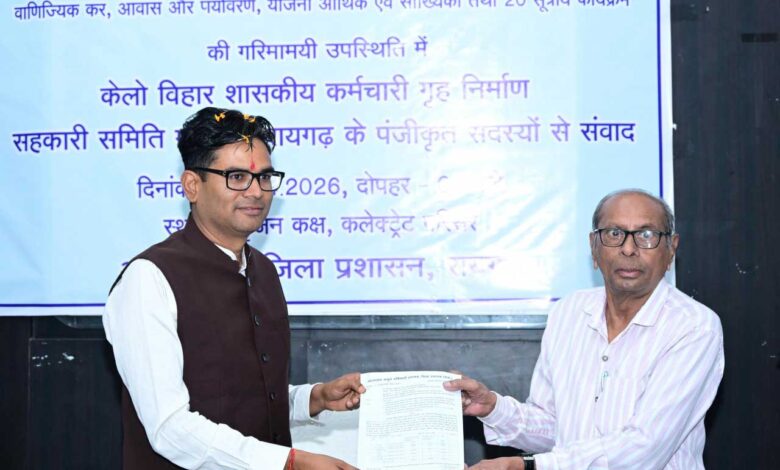 रायपुर, वित्त मंत्री एवं रायगढ़ विधायक श्री ओ.पी. चौधरी की उपस्थिति में कलेक्ट्रेट परिसर स्थित सृजन कक्ष में केलो विहार शासकीय कर्मचारी गृह निर्माण सहकारी समिति, रायगढ़ के पंजीकृत सदस्यों के साथ संवाद कार्यक्रम आयोजित किया गया। कार्यक्रम का आयोजन जिला प्रशासन रायगढ़ द्वारा किया गया।