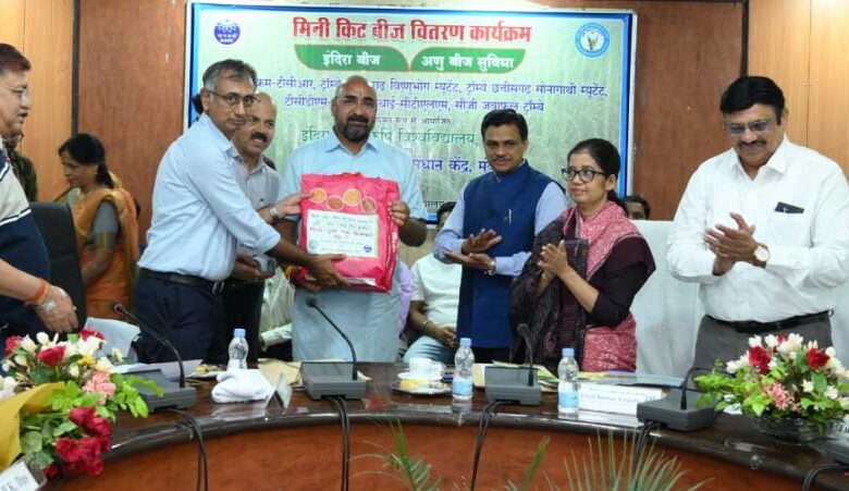 मिनी किट बीज वितरण समारोह की मुख्य अतिथि छत्तीसगढ़ शासन में कृषि उत्पादन आयुक्त श्रीमती शहला निगार थीं। कार्यक्रम की अध्यक्षता इंदिरा गांधी कृषि विश्वविद्यालय के कुलपति डॉ. गिरीश चंदेल ने की। समारोह में प्रदेश भर से आए प्रगतिशील किसानों को इंदिरा गांधी कृषि विश्वविद्यालय द्वारा भाभा अटामिक रिसर्च सेंटर ट्रॉम्बे (मुंबई) के सहयोग से विकसित किस्मों-विक्रम ट्रॉम्बे छत्तीसगढ़ राईस (विक्रम टीसीआर), ट्रॉम्बे छत्तीसगढ़ विष्णुभोग म्यूटेंट, ट्रॉम्बे छत्तीसगढ़ सोनागाथी म्यूटेंट, ट्रॉम्बे छत्तीसगढ़ दुबराज म्यूटेंट-1, बौना लुचाई एवं ट्रॉम्बे छत्तीसगढ़ जवाफूल म्यूटेंट के मिनी किट का वितरण किया गया।