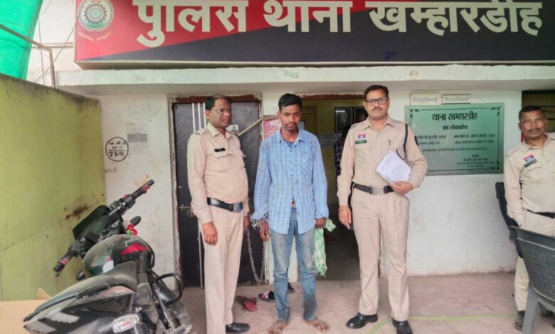 जिस पर आरोपी पूरन ढीमर को गिरफ्तार कर उसके कब्जे से चोरी की 01 नग दोपहिया वाहन जुमला कीमती लगभग 40,000/- रूपये जप्त कर आरोपी के विरूद्ध थाना खम्हारडीह में कार्यवाही किया गया है।
