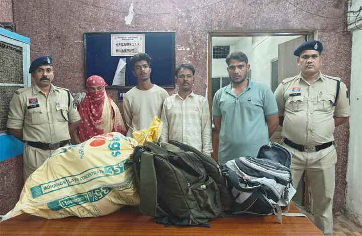 वरिष्ठ अधिकारियों के निर्देशन में एण्टी क्राईम एण्ड साईबर यूनिट तथा थाना टिकरापारा पुलिस की संयुक्त टीम द्वारा उक्त स्थान पर जाकर मुखबीर द्वारा बताये हुलियों के आरोपी एवं वाहन की पतासाजी करते हुये आरोपियों को चिन्हांकित कर पकड़ा गया। पूछताछ में आरोपियों ने अपना नाम प्रतीक शर्मा एवं मोहम्मद शमीम होना बताया। टीम के सदस्यों द्वारा उनके पास रखें बैग की तलाशी लेने पर बैग में गांजा रखा होना पाया गया। गांजा के संबंध में कड़ाई से पूछताछ करने पर दोनों आरोपियों द्वारा गांजा को चूना भट्ठी गंज निवासी शेख सारूख उर्फ शाहरूख एवं मुकूट नगर आजाद चौक निवासी पलक नागवानी उर्फ मिस बच्ची से प्राप्त करना बताया गया। जिस पर टीम के सदस्यों द्वारा शेख सारूख उर्फ शाहरूख एवं पलक नागवानी उर्फ मिस बच्ची की पतासाजी करते हुये दोनों को पकड़ा गया। गांजा के संबंध में पूछताछ करने पर इनके द्वारा एक मकान में गांजा छिपाकर रखना बताने के साथ ही आरोपी प्रतीक शर्मा एवं मोहम्मद शमीम को भी गांजा देना बताया गया। जिस पर शेख सारूख उर्फ शाहरूख एवं पलक नागवानी उर्फ मिस बच्ची की निशानदेही पर उनके कब्जे से भी गांजा बरामद किया गया।